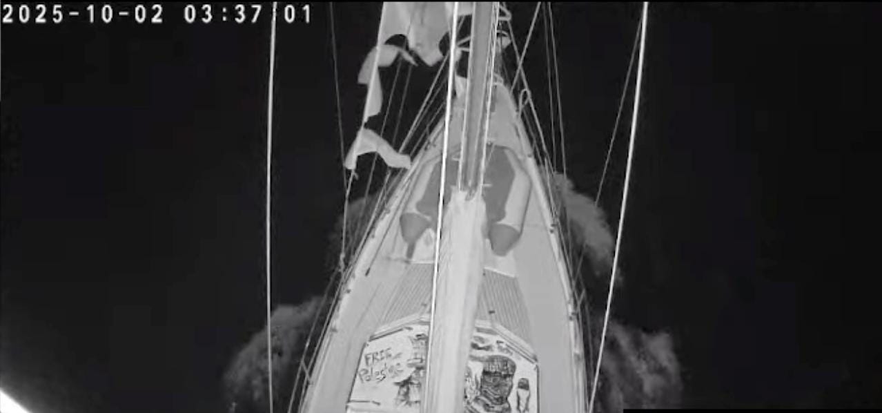 Bien que la flottille soit groupée, nous sommes trop dispersés pour observer ce que les Israéliens font réellement. Quand prennent-ils contact ? Utilisent-ils des zodiacs pour arraisonner ? Comment montent-ils à bord ? Je n’ai que les images de la Madleen en tête.